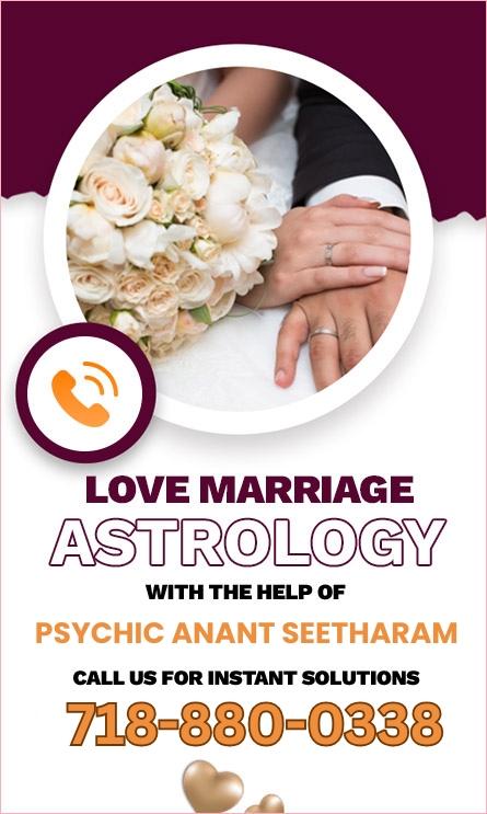 Astrologer Psychic Anant Seetharam Ji is a well-versed and established professional who can be consulted for matters related to love marriage astrology and relationships. With sound knowledge and years of experience in the field of astrology, he can help you move past all your love-marriage concerns. Psychic Anant Seetharam Ji has been aiding a huge number of clients across the globe. People have benefitted from his quality services. With the assistance of an adept astrologer like him, you will be able to ward off troubles that make it tough for you to get a love marriage done in a hassle-free manner. If you have lost all hope to resolve the maleficent planetary positions in your life, you can consult him and get it fixed.